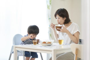 安定した姿勢で食べられるように、お子さま用の椅子を用意したり、足台を設置してしっかり足をつけられる環境を整えることが大切です。