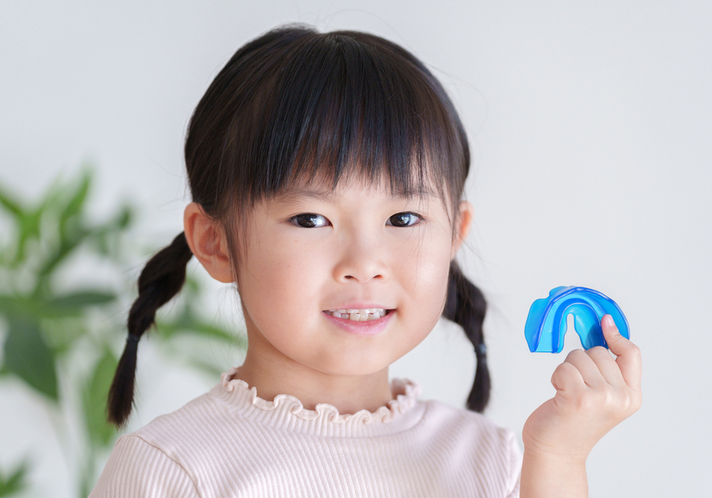 予防矯正では柔らかいマウスピースを使い、お口周りの筋肉や舌をトレーニングすることでお口の機能を改善していきます。この予防矯正を受けることで、永久歯に生え変わった際にきれいな歯並びに導きやすくなります。また、口呼吸の改善や嚥下、悪い姿勢の改善などの効果も期待できます。