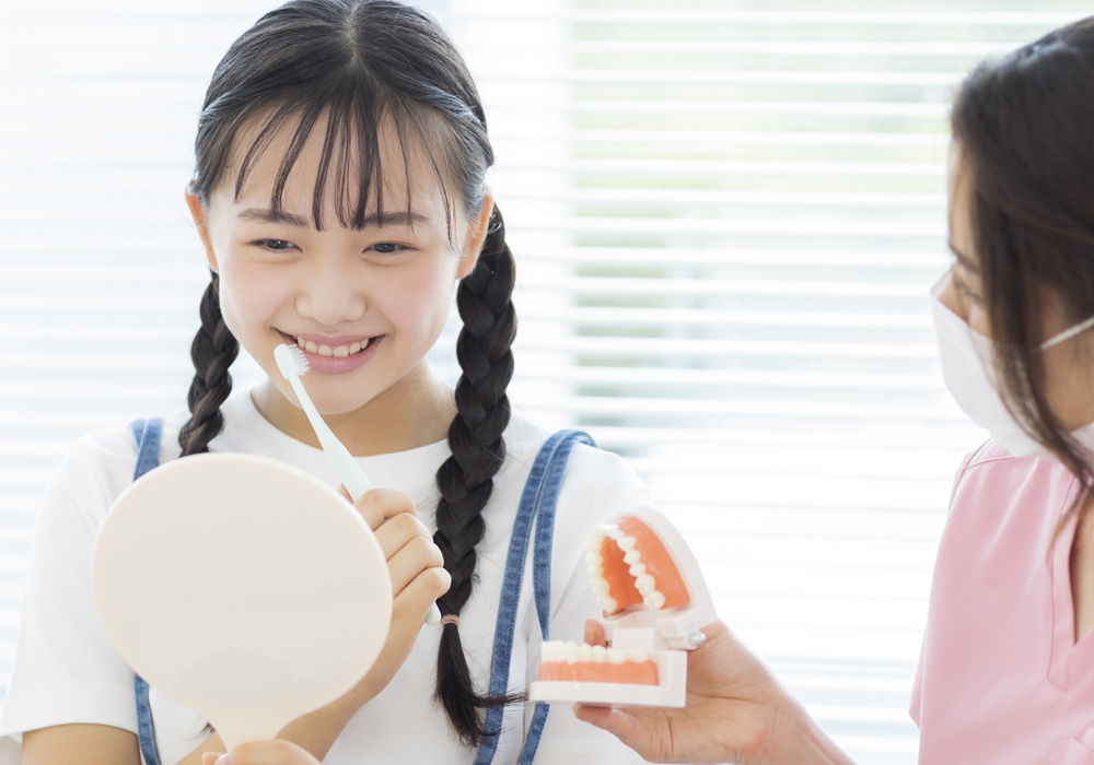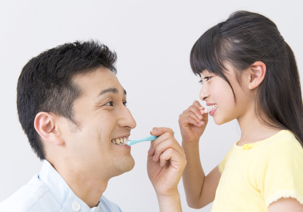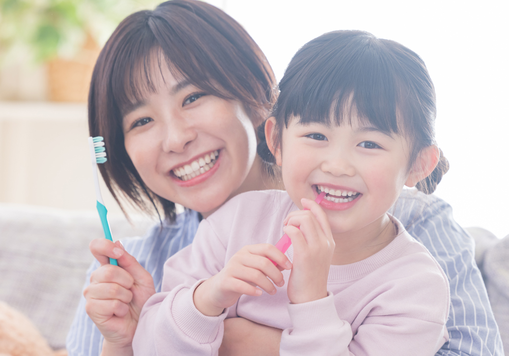 小学生の間は、乳歯から永久歯の生えかわりの時期で歯並びがデコボコしがちです。そのため、自分ではしっかり磨けないことがほとんどです。ご家族が仕上げ磨きをして、すみずみまでしっかり汚れを落としてあげましょう。