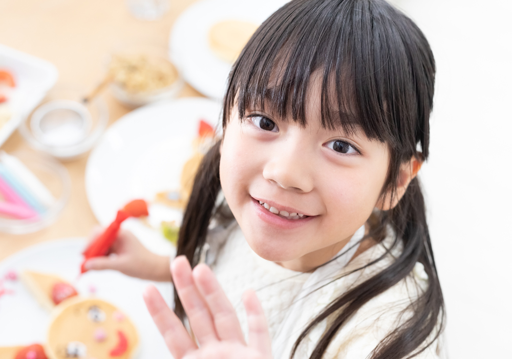 当院では、バランスのとれた食べ方を身に付ける「食育」と「食事指導」を行っています。バランスのとれた食べ方で口の周りや舌の筋肉をしっかり鍛え、すこやかな口腔機能の発達を促します。