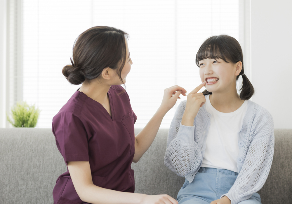 当院では、お子さまの口腔機能をしっかりチェックし、成長の妨げになる生活習慣を見つけ出します。そして、適切なアドバイスとMFT(口腔筋機能療法)などで、お子さまが健康なお口を維持できるよう、さまざまな面から支援します。